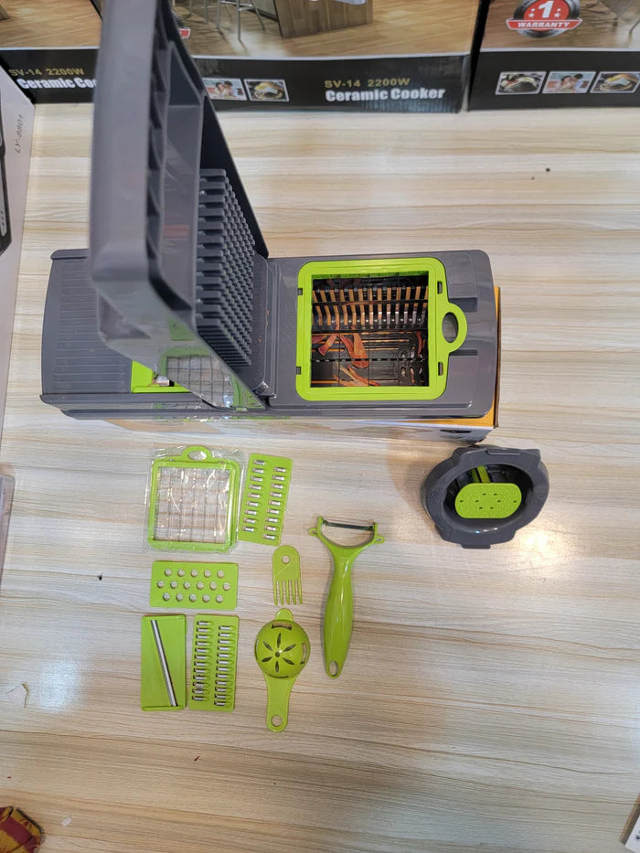 Upgrade your cooking game with Zayzaa.comβs 14-in-1 Vegetable Cutter Slicer! π₯ From fresh salads π₯¬ to mouth-watering curries π or family snacks πΏ, prep your veggies & fruits in seconds β no mess, no hassle!β¨ Key Features Youβll Love: πͺ 14-in-1 Multi-Function: Slice, dice, chop & grate β all in ONE tool! Perfect for fast meal prep. β‘ Super Sharp Stainless Steel Blades: Durable, precise, and professional-level cuts every time. π Space-Saving Design: 14 tools combined in 1 compact slicer β save kitchen space! π§ Easy to Use & Clean: Ergonomic handle + easy disassembly = stress-free cleaning. π² Ideal for Pakistani Cuisine: Make perfect salads, samosas π₯, bhujias & more β uniform slices every time. π οΈ Long-Lasting Durability: Made with premium materials built to last.